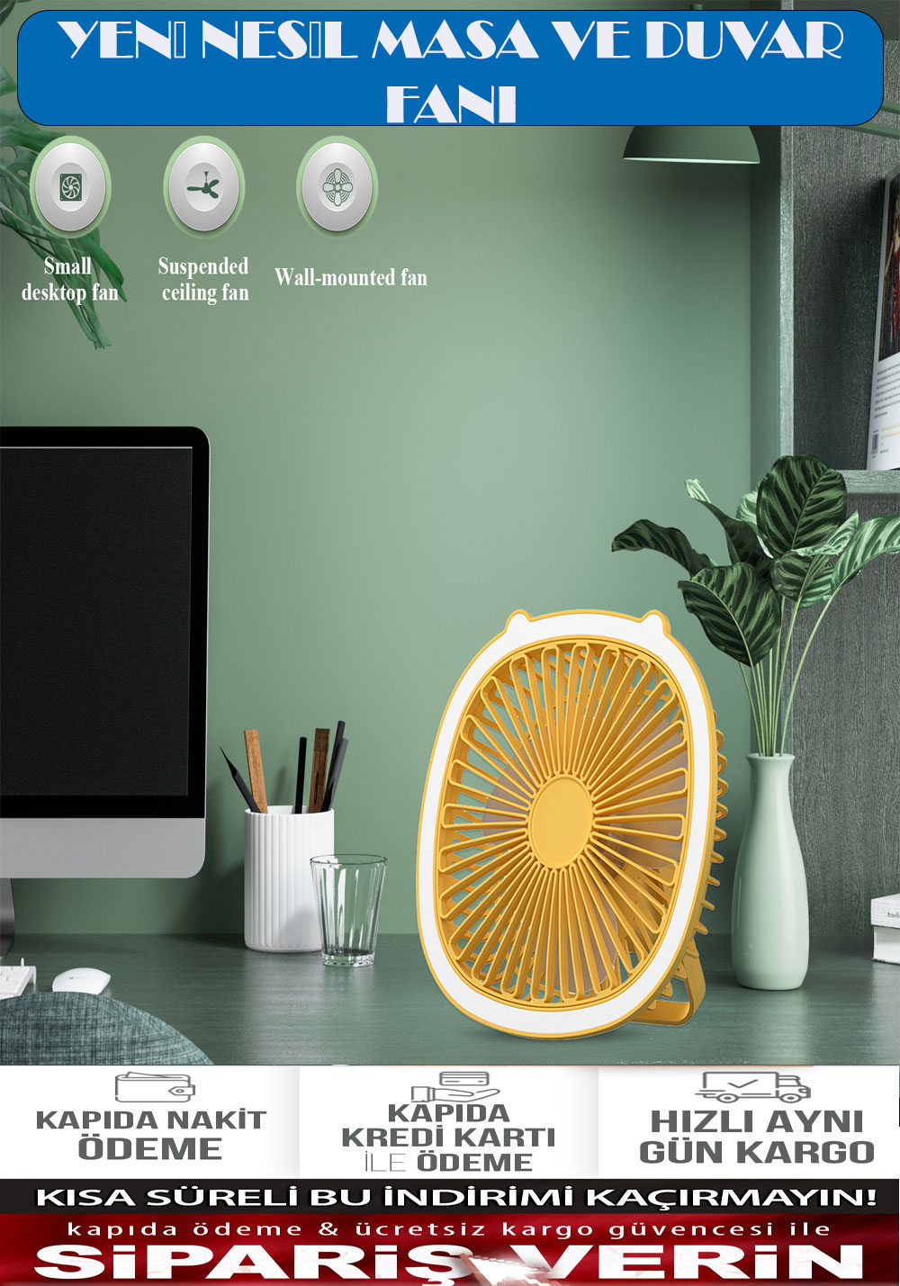 1 Adet Işıklı Vantilatör Fan ( şarjlı ) -