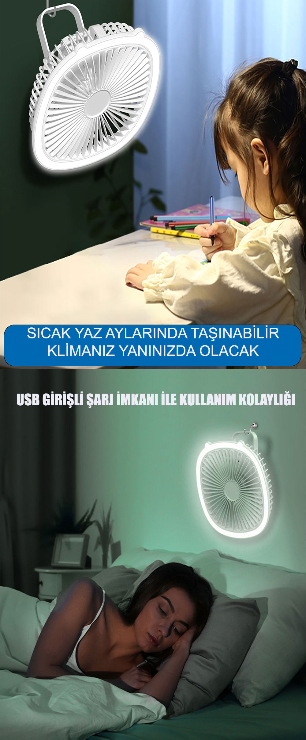 2 Adet Işıklı Vantilatör Fan ( şarjlı ) -