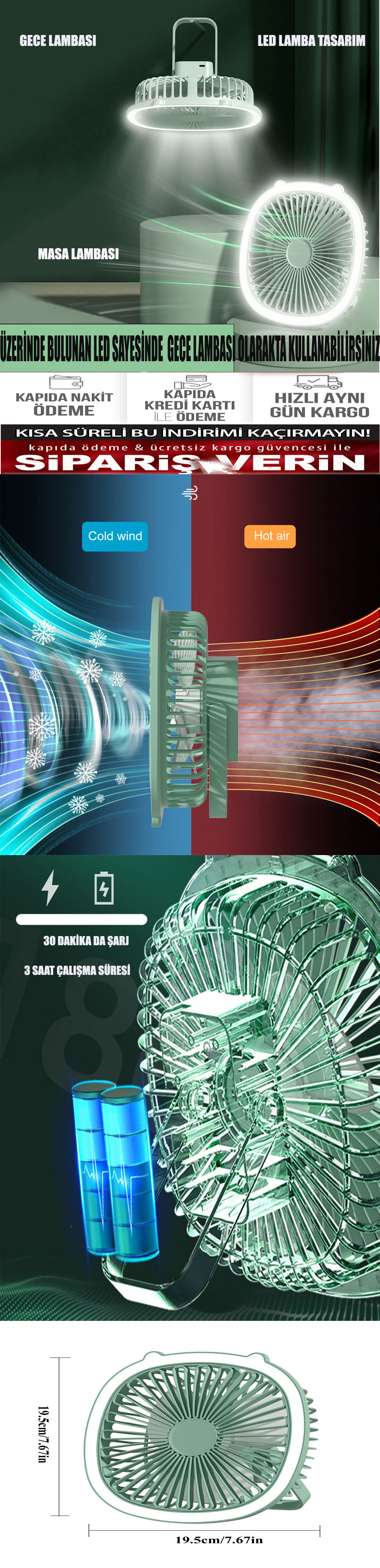 3 Adet Işıklı Vantilatör Fan ( şarjlı ) -